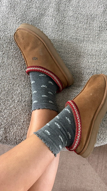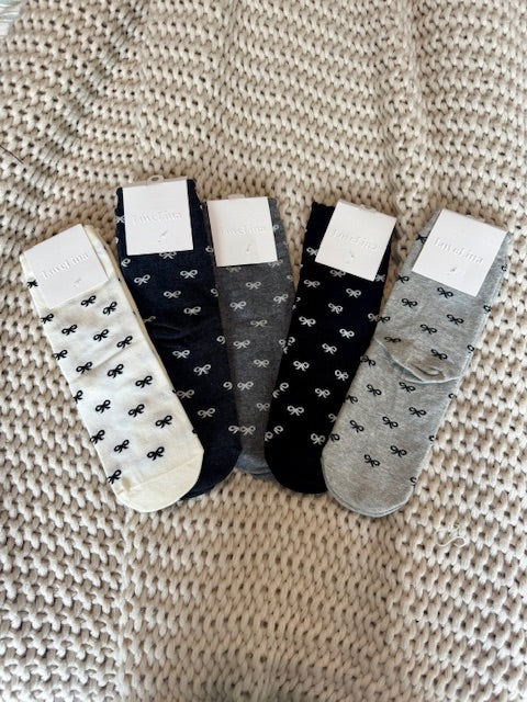 These Minimal Bow Ankle Socks feature a charming, delicate bow pattern on a soft and stretchy fabric, perfect for everyday comfort.